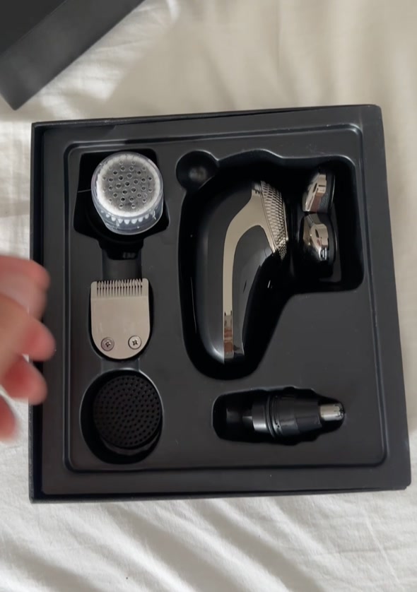Your purchase includes the Bennii® Shaver, a USB charging cable, a hair clipper and guards, a nose and ear trimmer, a facial cleansing brush, a cleaning brush, and a travel bag. Everything you need for complete grooming is included.